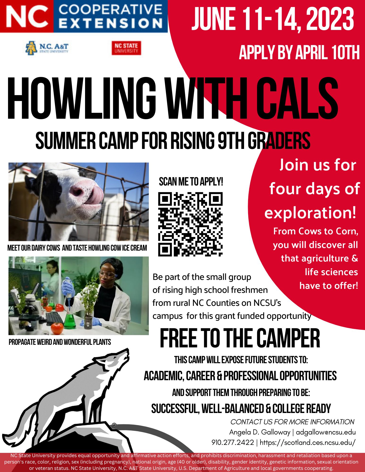 NC State's College of Agriculture and Life Science is hosting a 4 day summer camp for RISING 9th GRADERS, June 11-14, 2023!